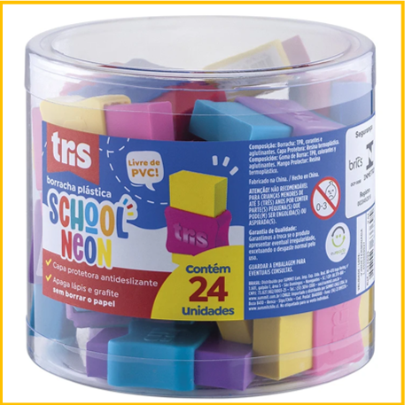 Seja o primeiro a avaliar “Borracha capa plast.school neon Tris CX/24und”
