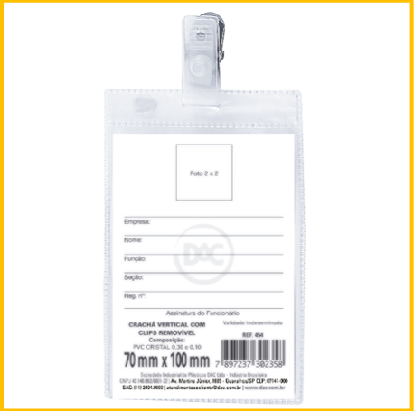 Seja o primeiro a avaliar “Cracha vertical c.presilha 70x100mm DAC Pct/50und” Cancelar resposta