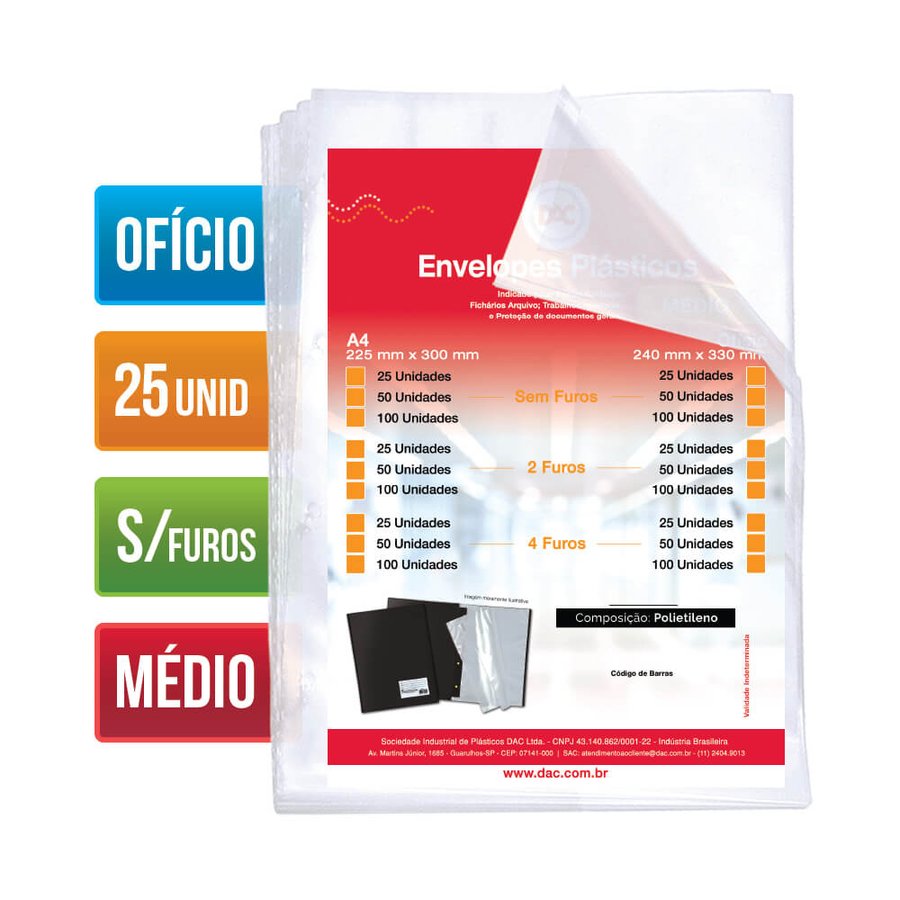 Envelope plastico sem furos médio 25und Dac